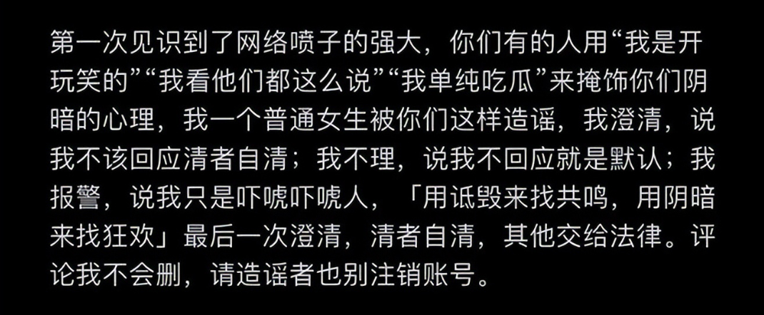 这是小慧在报警后发出声明的后半部分: