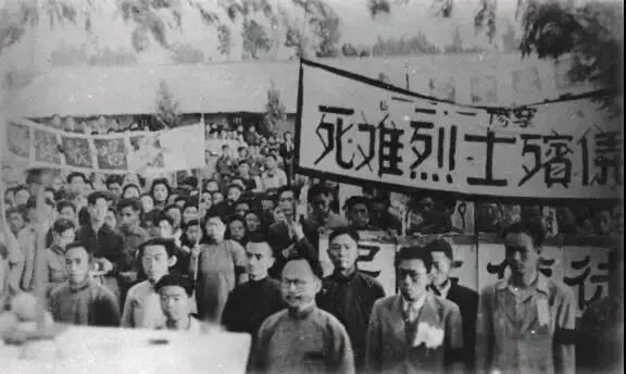 1946年3月7日,闻一多(前排中)参加昆明学生联合会为“一二·一”四烈士举行的公葬及游行