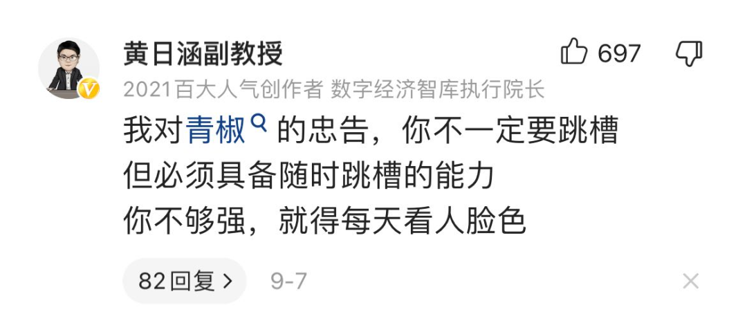 “你不一定要跳槽,但你必须要具备随时跳槽的能力。你不够强,就得看人脸色。”
