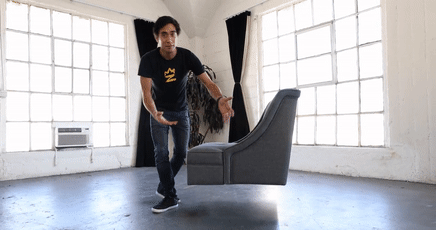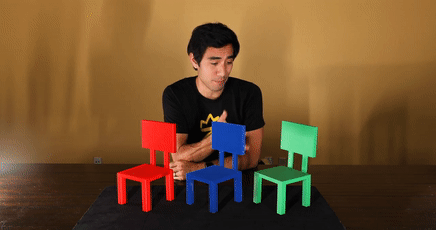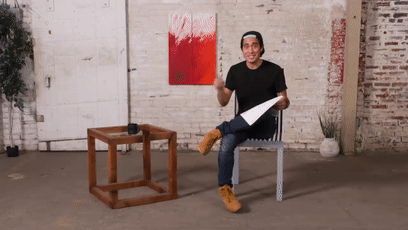 这把椅子来自男巫@Zach King,他之前就展示过一批非常有趣的家具,基本上都自带视觉陷阱,只要转动一下摄像头就会碰撞出神奇的效果。