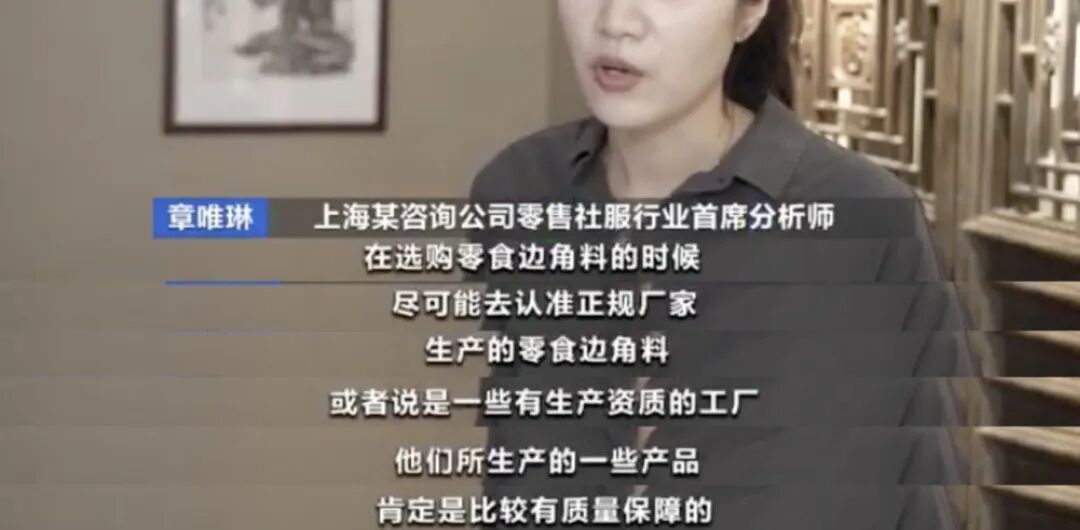 有食品企业负责人在接受央视采访时表示,所在门店的销售额约为2000万元,其中,“零食边角料生产出来就卖掉了,占比已经达到了30%左右”。