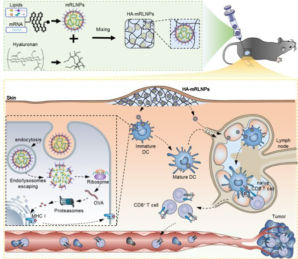 ▲水凝胶-LNPs系统制备和体内肿瘤免疫示意图