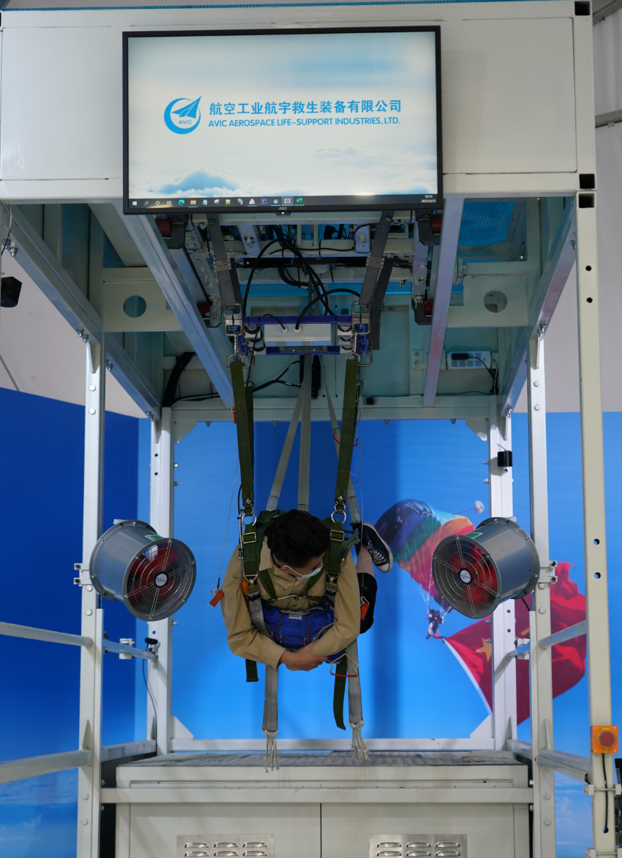 本次航展上,结合VR技术的伞降训练体验也是不容错过的一大亮点。