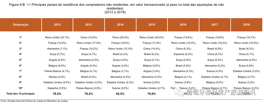 根据葡萄牙国家统计局数据,非本地居民对葡萄牙房产成交量的贡献率约为5~8%,对成交总额的贡献率为8~15%。这其中像法国、德国、英国人为主的欧洲居民,他们多数为纯投资,而不考虑黄金居留因素。而以中国人为主的、以黄金居留为投资目的的投资人,在葡萄牙投资移民最为火爆的2013~2015年,约占非本地居民购买力的15~30%,随后几年降至10%以内。