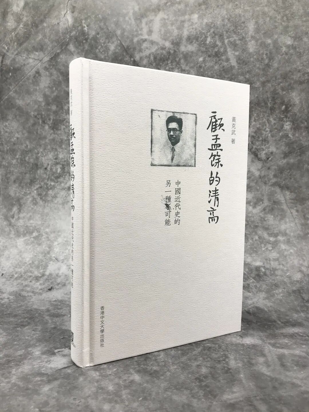 這種書其實很不好做設計。因為傳主不是那麼有名,而且關鍵在於他沒什麼照片,封面上如果沒有顧孟餘的照片,好像感覺也有點不太對勁。這張照片是我從網上找的很小的一張圖。如果你單用這張網上小照片的話,它不成立,沒法在這書上用。於是我用我過去印的一張銅版畫跟這張照片結合。它有一種歷史感,有一種被腐蝕的感覺。銅版是用酸腐蝕,或者刻出凹凸痕跡來,然後在銅板畫的印刷機上印出來。所以把這個和他的照片結合在一起,讓它們有了一點歷史的質感。