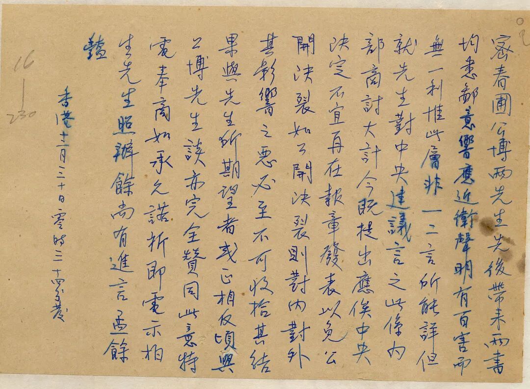 1938年12月顧孟餘致電汪精衛,極力勸阻其發佈對日本妥協的「豔電」