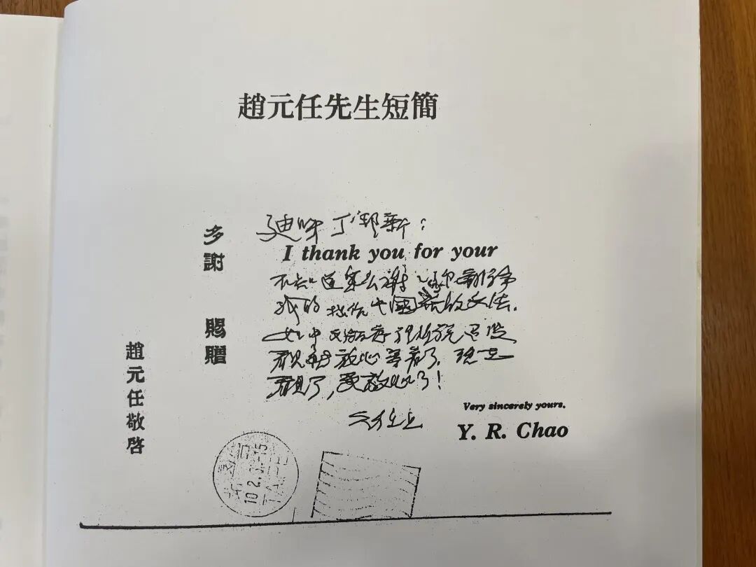 趙元任給丁邦新的感謝卡: