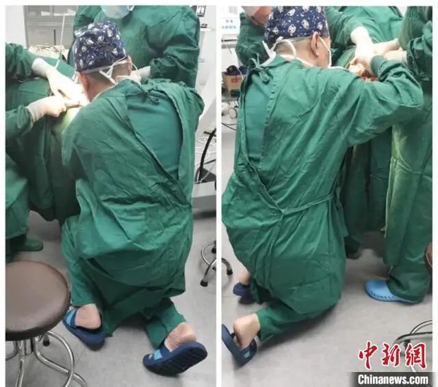 即使不考虑这“最美跪姿”对手术无菌原则的严重违反,医生跪着做手术也是不能接受的。
