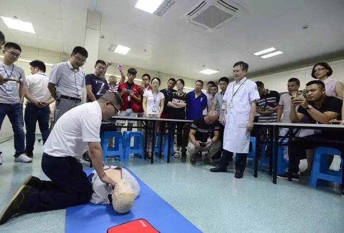在县人民医院技能培训中心,医务人员进行心肺复苏急救演示,“路上遇到倒地人员,先确保救人环境安全,呼救与急救结合。双手叠加,以掌根按压檀中穴位置,30次为一组,共做5个循环。”新媒体代表学习热情高涨,在指导下进行急救模拟训练。