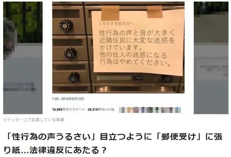 日本人在公寓邮箱上贴告示,控诉住在1004号房的邻居深夜办事声音太大,给附近住户带来困扰。