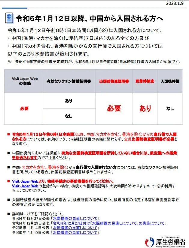 🔗新型コロナウイルス感染症に関する水際対策の強化に係る措置について(令和5年1月10日)[転載:外務省]