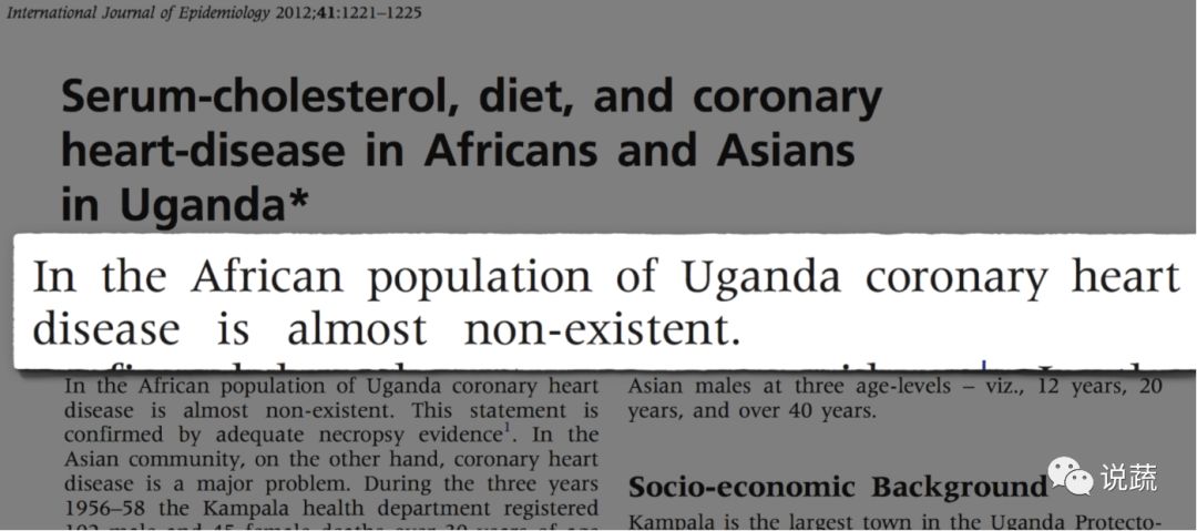 20世纪30~40年代,西医出诊撒哈拉以南的教会医院,发现肆虐发达国家 的慢性病在非洲几乎是绝迹的。乌干达是东非一个人口数百万的国家,该国冠心病的发病率大约是零。