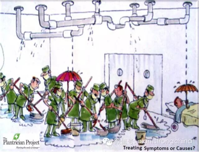 对于少数心脏病患者,特别是那些正处于心脏病发作或冠状动脉综合征的急性期病人, 支架或冠状动脉旁路手术可能会挽救病患的生命,而对于其余的病人,现行的治疗方法没有一种是针对病因的,而西方的饮食恰恰就是该病的病因,结果, 所有患者的病变不断发展, 以至需要使用更多的药物、支架和旁路手术, 从而加重心脏损伤和心力衰竭, 还常常导致死亡。从本质上讲, 心脏病属于良性的食源性疾病。6,7