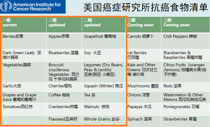 本文继续介绍美国癌症研究所(AICR)推荐的抗癌食物。在抗癌食物a中已经给出,豆类,谷物和蔬菜,本文给出菇类,水果,坚果种子和饮品。因为部分抗癌食物清单,其证据网站未公开,只是给出图片,抗癌成份和抗癌效果暂时缺席。抗癌食物c会列出《救命》书中提到的抗癌食物。