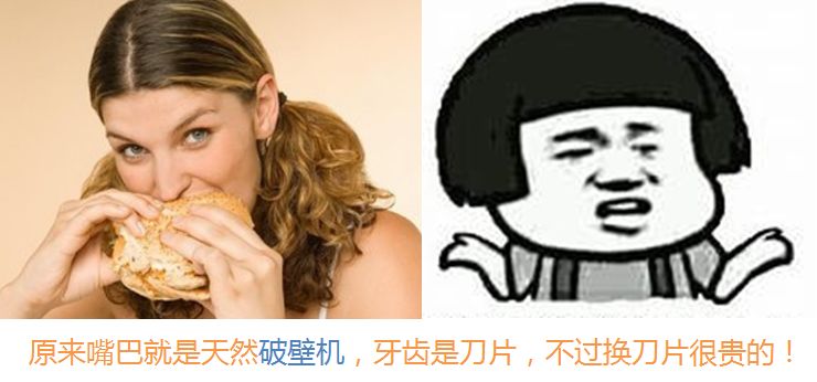 正常人吃东西,用牙咬,口腔咀嚼,就是破壁过程,这是咬破。