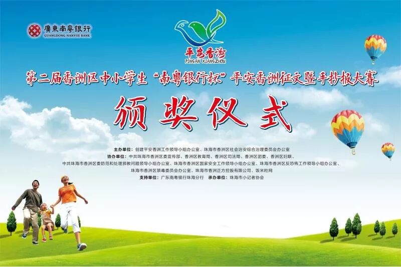 2018年1月1日下午,第二届香洲区中小学生“南粤银行杯”平安香洲手抄报暨征文比赛颁奖仪式在香洲城市客厅(灯塔广场)成功举行。