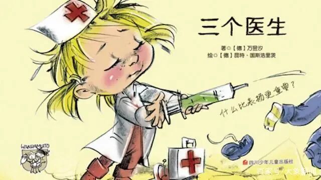 经查询,该绘本名为《万大姐姐有办法:三个医生》,作者为旅德艺术家万昱汐和德国昆特·国斯浩里茨夫妇,在网络购物平台上,有读者在2020年评价称“书内容马马虎虎,但插图实在太暧昧,根本不适合小孩看”。