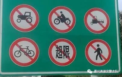 1、浙江省的高速公路收费站入口都有一块醒目标志,标志的内容表明行人、非机动车、摩托车等是禁止进入高速公路的。
