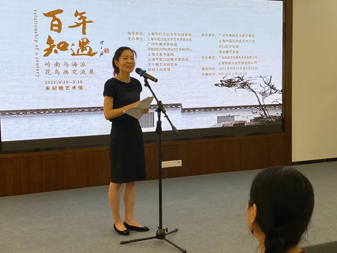在庆祝中国共产党成立100周年之际,由上海市虹口区文化和旅游局指导,虹口区文学艺术界联合会、广州市美术家协会、虹口区美术家协会、上海文荟书画院、王个簃艺术研究会主办,上海中国画花鸟画艺术沙龙、广州市美协花鸟画艺委会、虹口区文化馆、朱屺瞻艺术馆承办的“百年知遇——海派与岭南派花鸟画交流展”于9月10日上午在朱屺瞻艺术馆拉开帷幕。