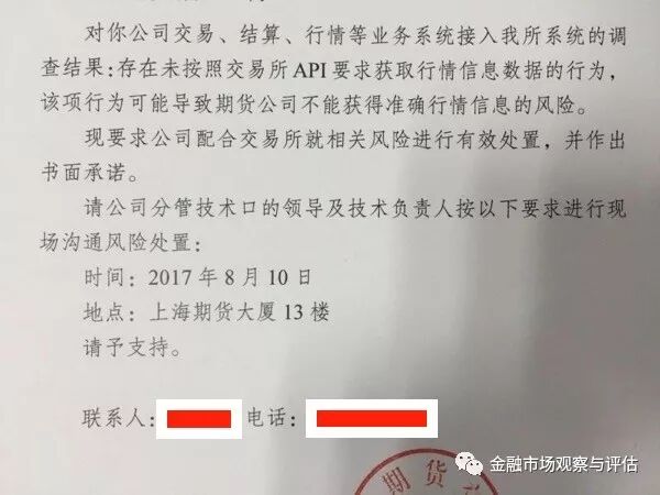 2017年8月初,艾科朗克在上期所合规检查过程中被发现破解交易所 API 非法获取行情,被勒令停止并限期整改。上期所还为此专门发函约谈了数家使用艾科朗克交易系统的期货公司。见下图中的上期所约谈通知文件: