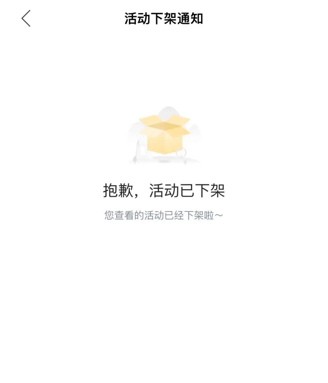 页面中“小白理财训练营”的宣传banner图,点进去之后显示活动已下架。