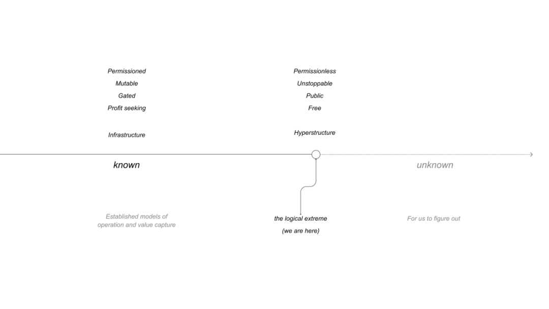 区块链创造了 Hyperstructure 的架构, 区块链上的协议就是 Hyperstructure. 它们无法被关停, 免费使用 (gas 不算), 有价值积累, 有激励, 无需许可, 多方获利, 可信中立.