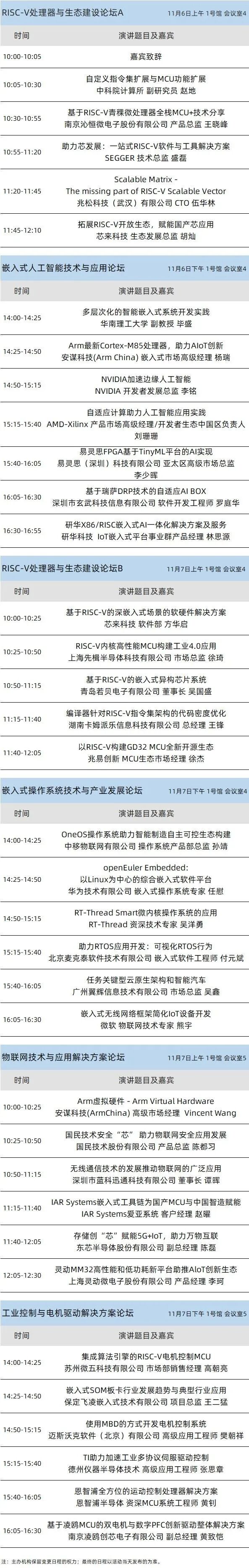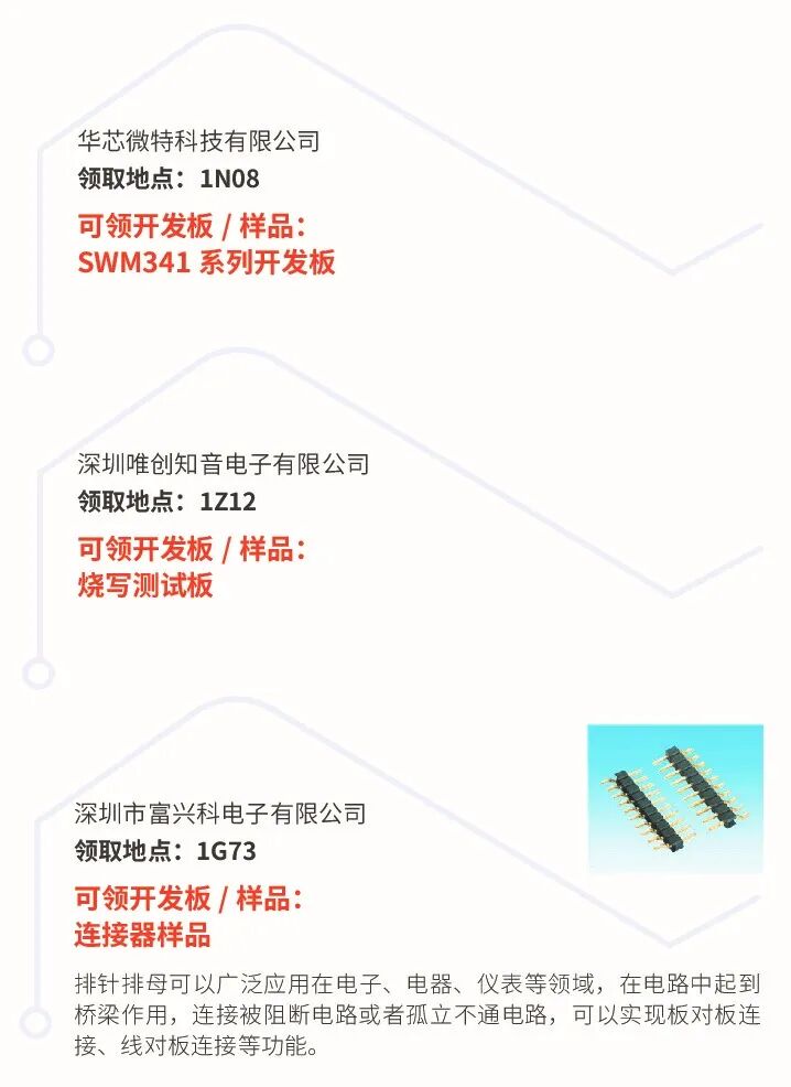 RISC-V及开源硬件专区(1号馆1S52):参展企业包括跃昉科技、沁恒微电子、中移物联、麦克泰软件、时擎智能、先楫半导体、卡姆派乐、劳特巴赫、感芯科技、爱亚系统。