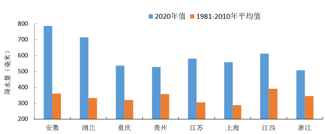 其中长江上游流域降雨量348.5毫米,较常年同期偏多22%,为历史同期第2多,长江中下游流域降雨量576.3毫米,较常年同期偏多70%,为历史同期最多