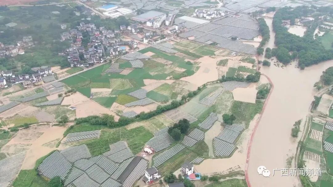 广西资江水位持续上涨,7月2日资江最高洪峰水位达到378.73米 。图:广西新闻网