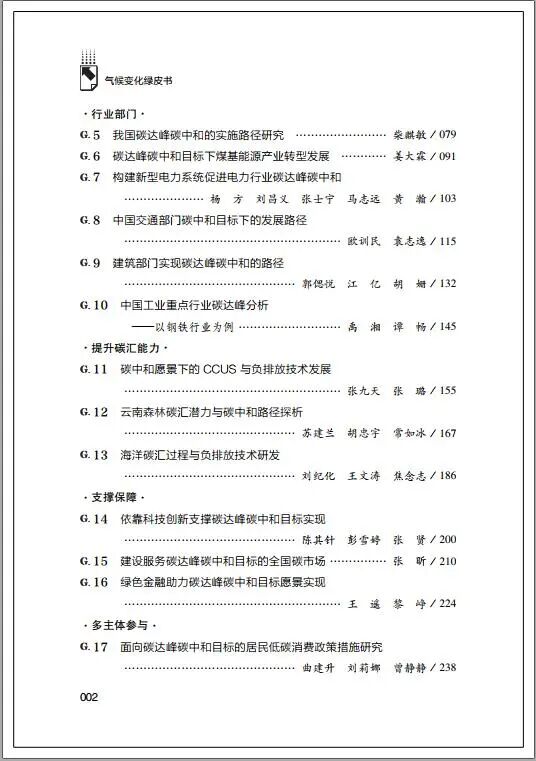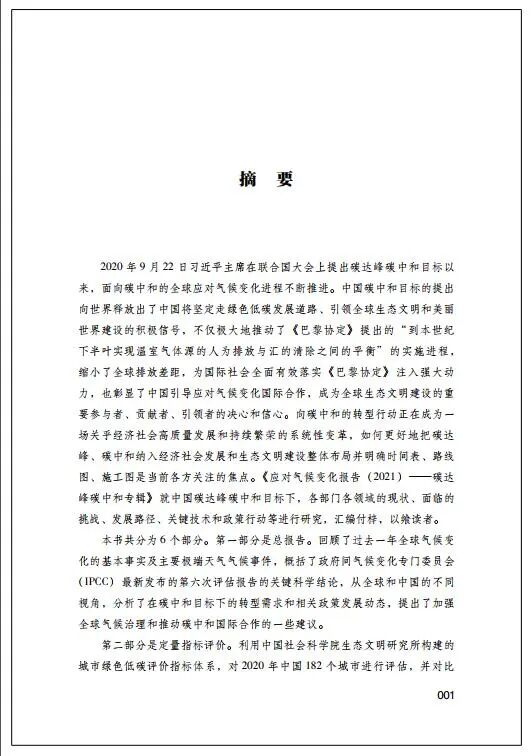 附:2021年气候变化绿皮书《应对气候变化报告2021:碳达峰碳中和专辑》摘要与目录