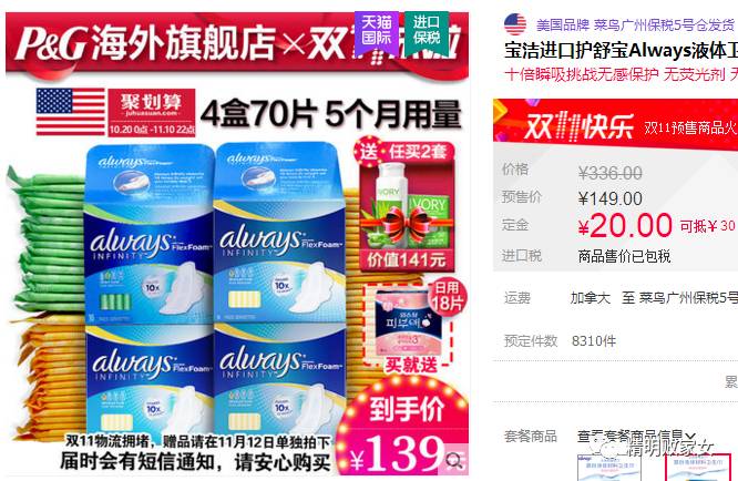 这款姨妈巾在“宝洁官方旗舰店”也有售,只不过买赠活动也不一样,要买两套及以上,才能有比较丰富的赠品。