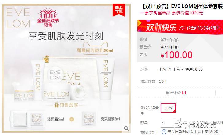 其实去年双十一的EVE LOM更划算,没有送别的东西,就是原产品买一送一,相当于五折。
