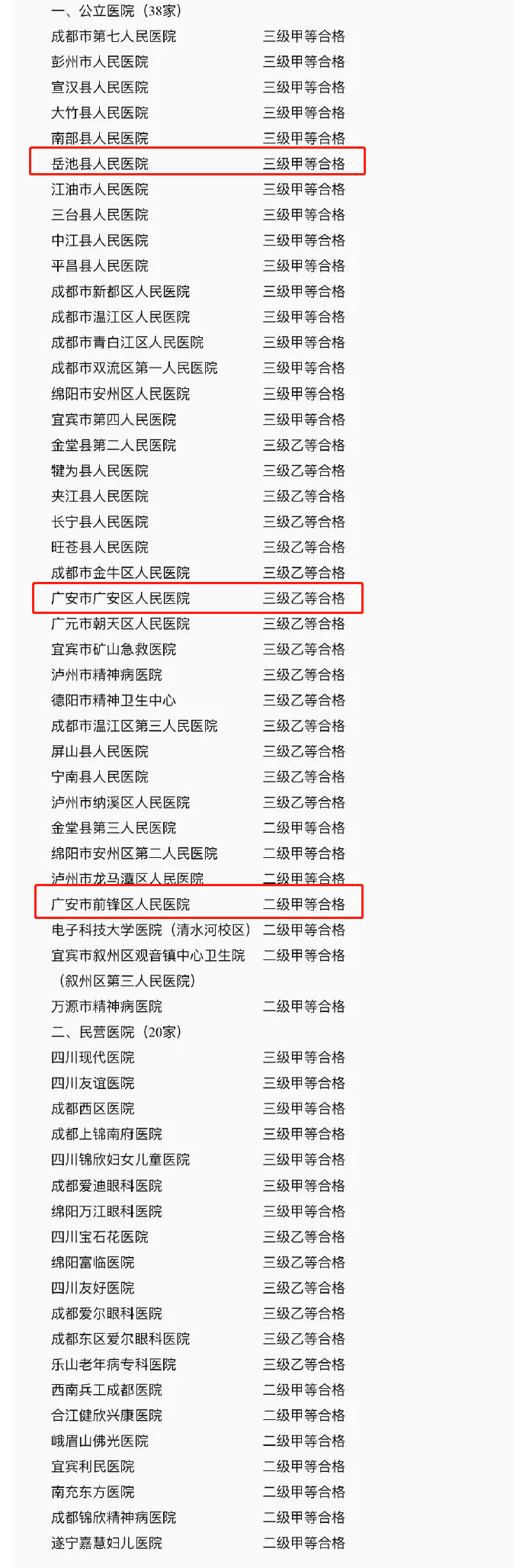 2020年医院等级评审结果中,四川23家医院拟升为三级甲等,21家医院拟升为三级乙等,14家拟升为二级甲等。