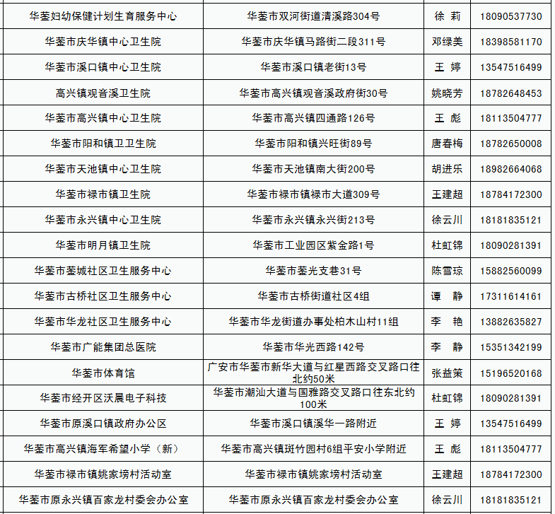 1.新冠病毒疫苗接种点汇总