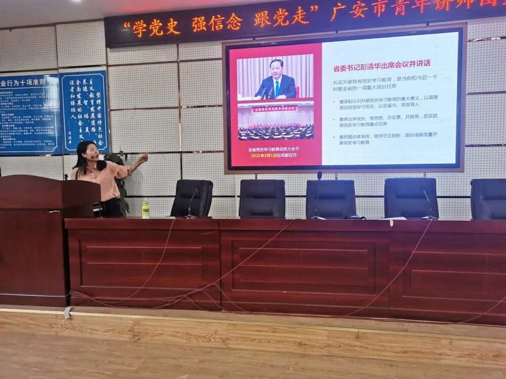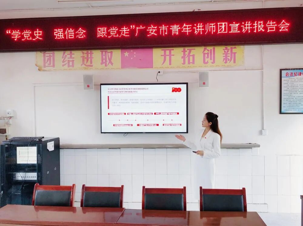5月21日,青年讲师团成员、广安市育才学校教师李豪在学校电子会议室,围绕“学党史、强信念、跟党走”主题,为50余名师生开展党史专题宣讲。