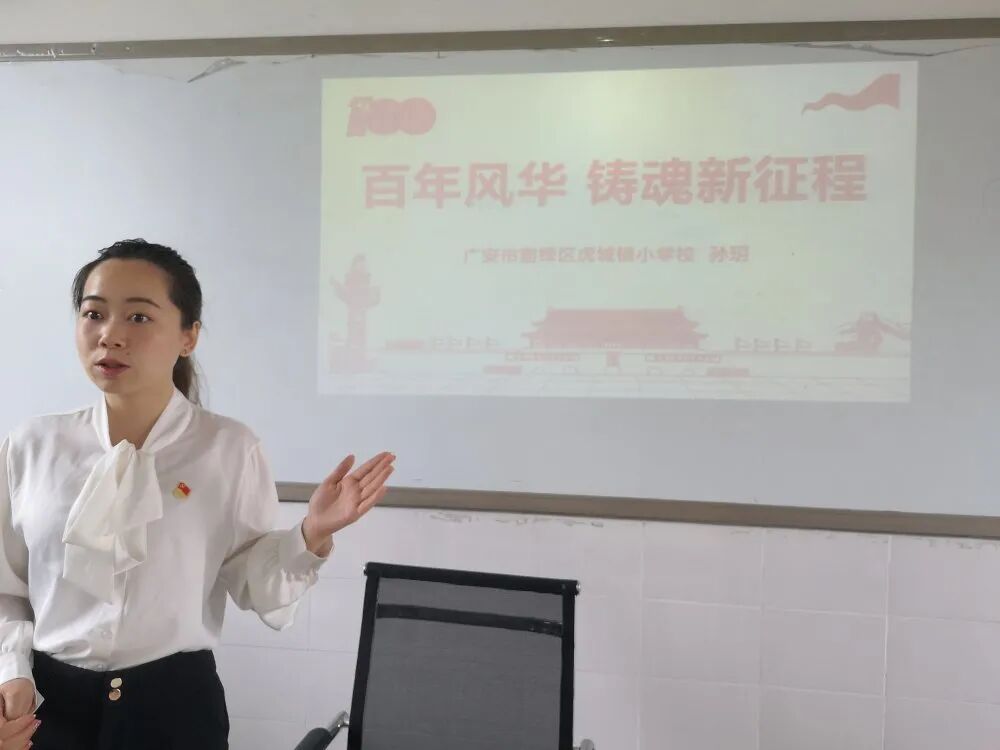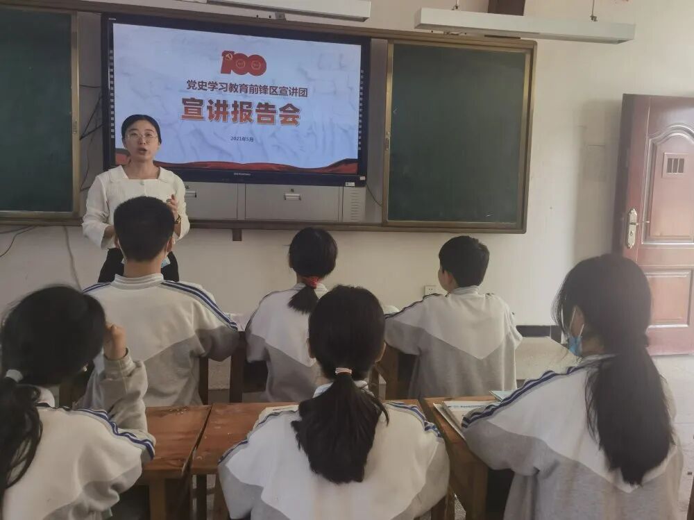 5月20日,青年讲师团成员、前锋区虎城镇小学校历史教师孙玥在虎城镇小学校,围绕“百年风华,铸魂新征程”主题,为虎城镇小学校67名教师开展党史学习专题宣讲。5月21日,孙玥在虎城镇小学校初中部,围绕“不忘初心,永远跟党走——回顾中国共产党的奋斗历程”主题,为虎城镇小学校初中八年级52名学生开展党史学习专题宣讲。