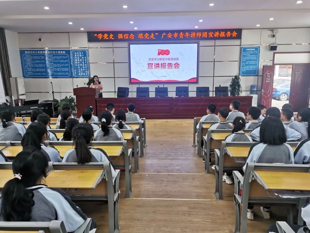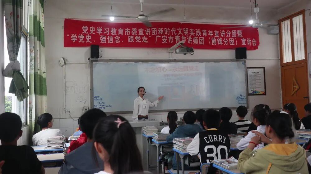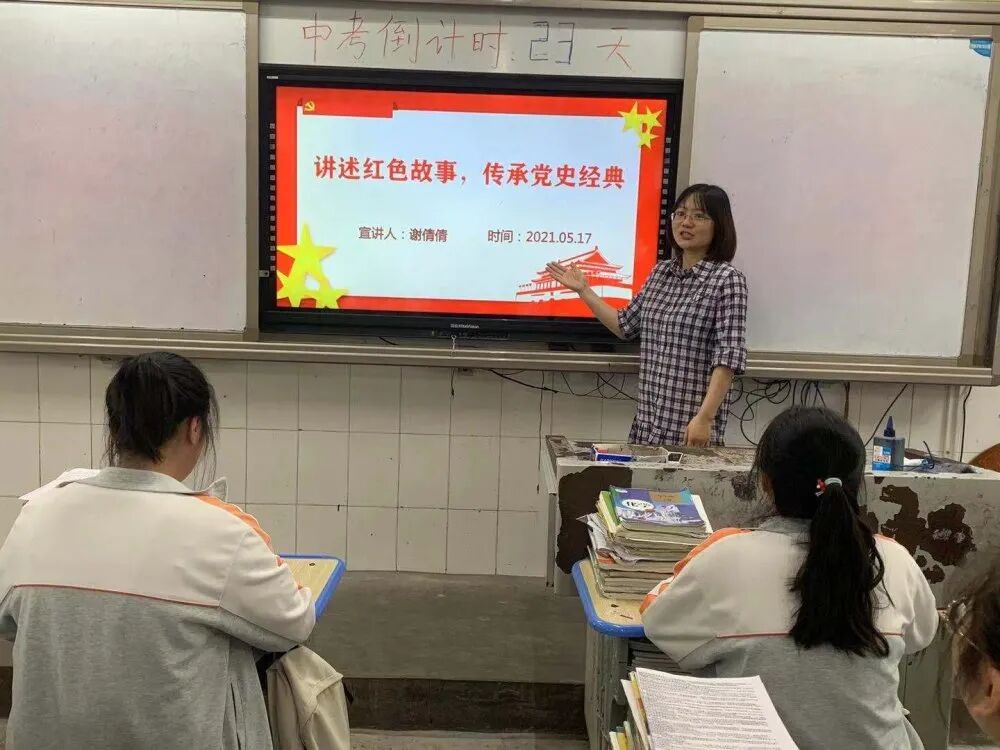 5月17日,青年讲师团成员、广安第三中学谢倩倩老师在初三年级1班,以“讲述红色故事 传承党史经典”为主题开展党史学习专题宣讲。