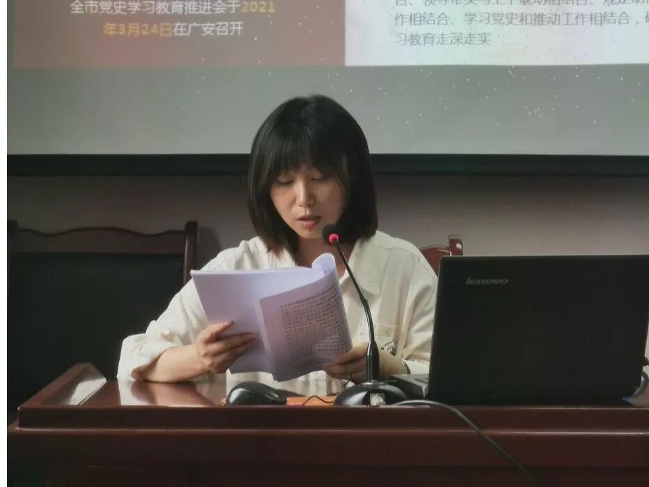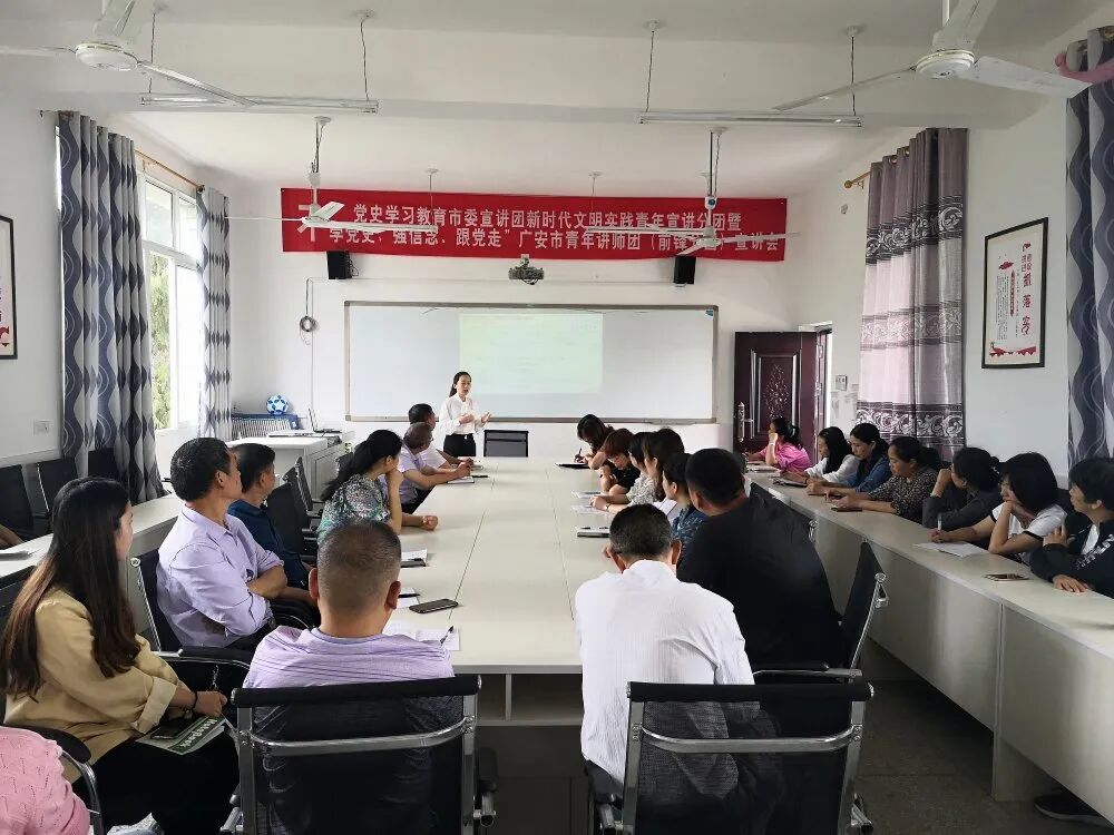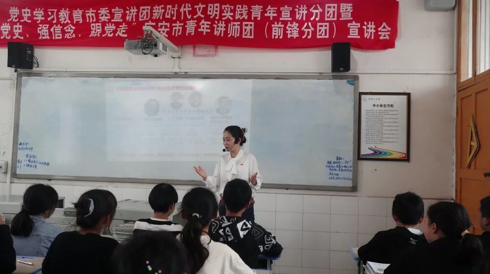 5月20日,青年讲师团成员、广安区教师进修学校讲师伍慧在广安区龙台小学校围绕《传承红色基因 凝聚奋斗伟力》主题,为部分师生开展党史学习专题宣讲,现场听众50余人。