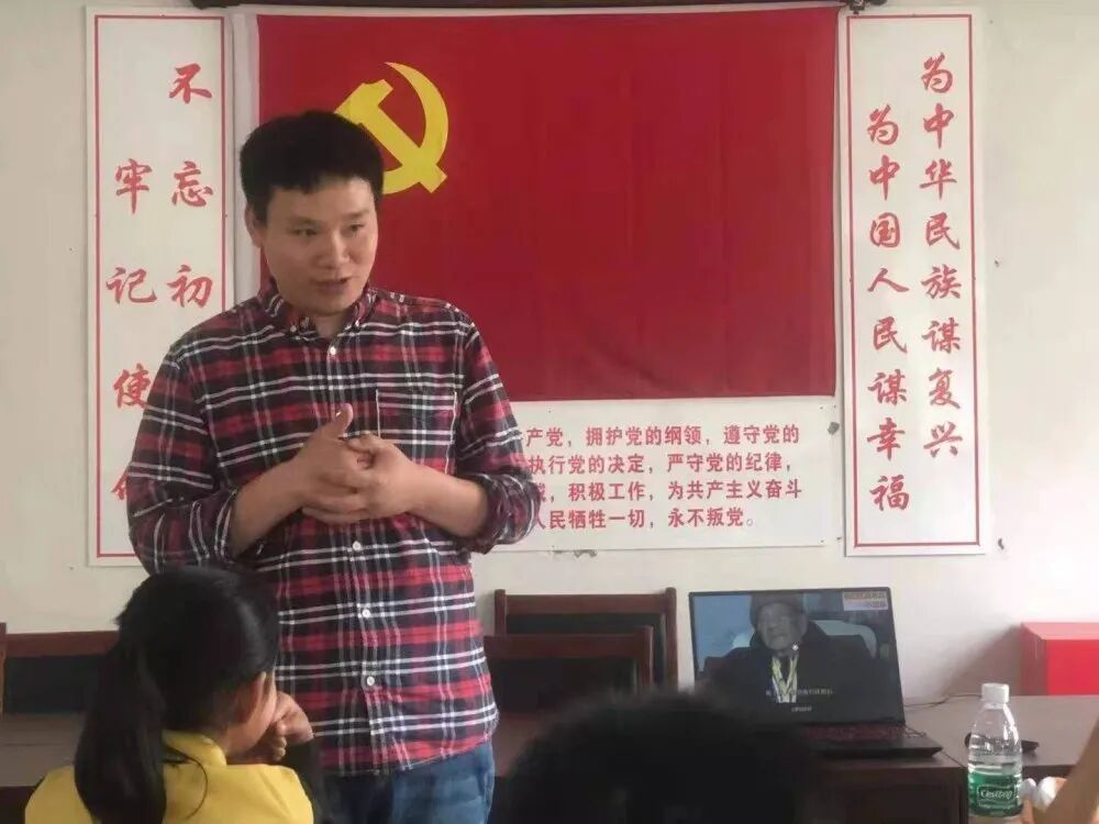 5月16日,青年讲师团成员、邻水中学历史教师骆孝元在邻水县城南镇花石村童伴之家为留守儿童讲《抗战时期的中国共产党》。