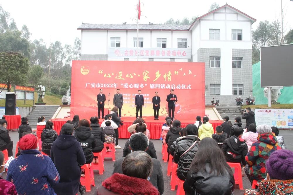 1月21日,由共青团广安市委主办的广安市2022年“爱心暖冬”慰问活动启动仪式在华蓥市古桥社区举行。广安市委常委、秘书长,市总工会主席胡彦军出席活动。市创业青年、西部计划志愿者、返乡青年农民工、留守学生代表等40余人参加了启动仪式。启动仪式由共青团广安市委书记余东洋主持。