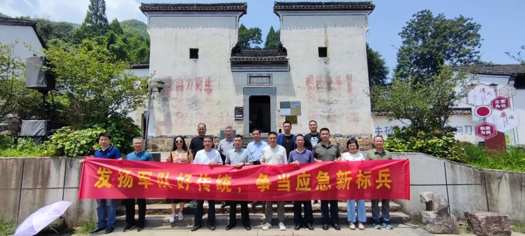本次教育实践活动在新四军随军被服厂旧址开展。该厂位于鸬鸟镇山沟沟村茅塘,院墙外立面有“自力更生、艰苦奋斗”“拥护领袖、抗战到底”等红色标语,石库院门上方写有“永远革命”,当年团结抗战、艰苦奋斗的场景清晰再现。参观的全体退役军人肃立静观,精神振奋,都在这开始了关于新时代应急管理人如何继承发扬“铁军精神”的寻问之旅。