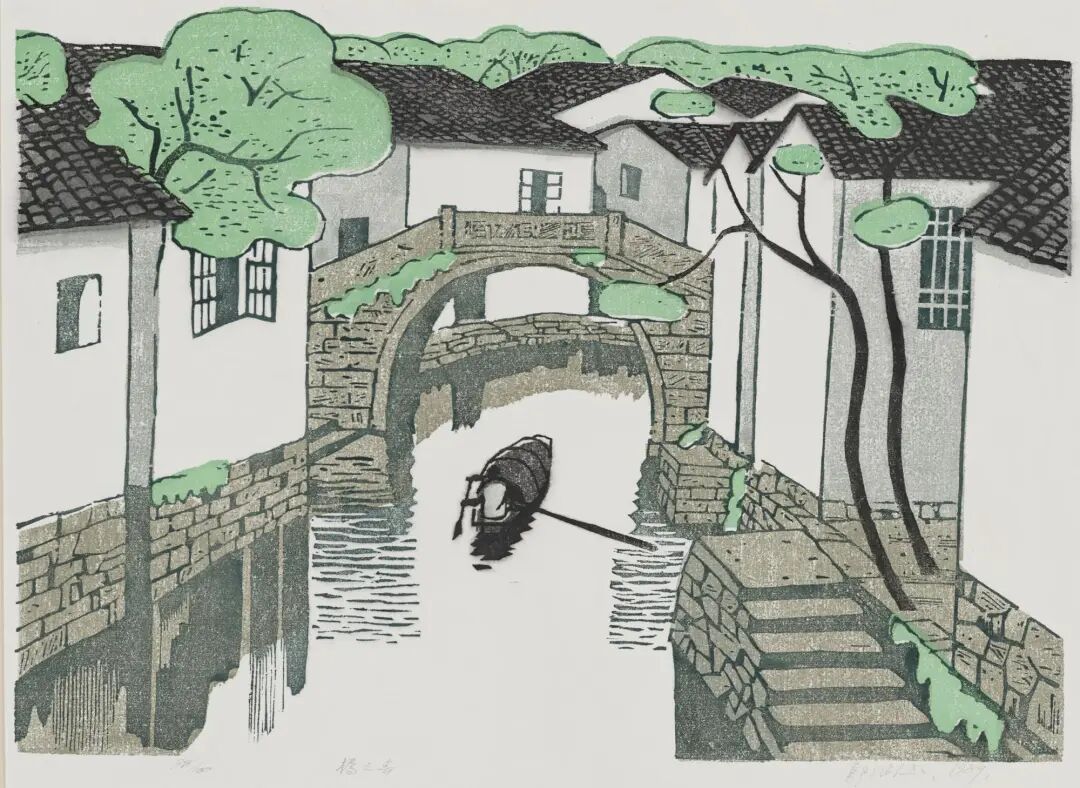 邬继德,桥之春,版画,39.5x55厘米,1989年,上海美术馆(中华艺术宫)藏
