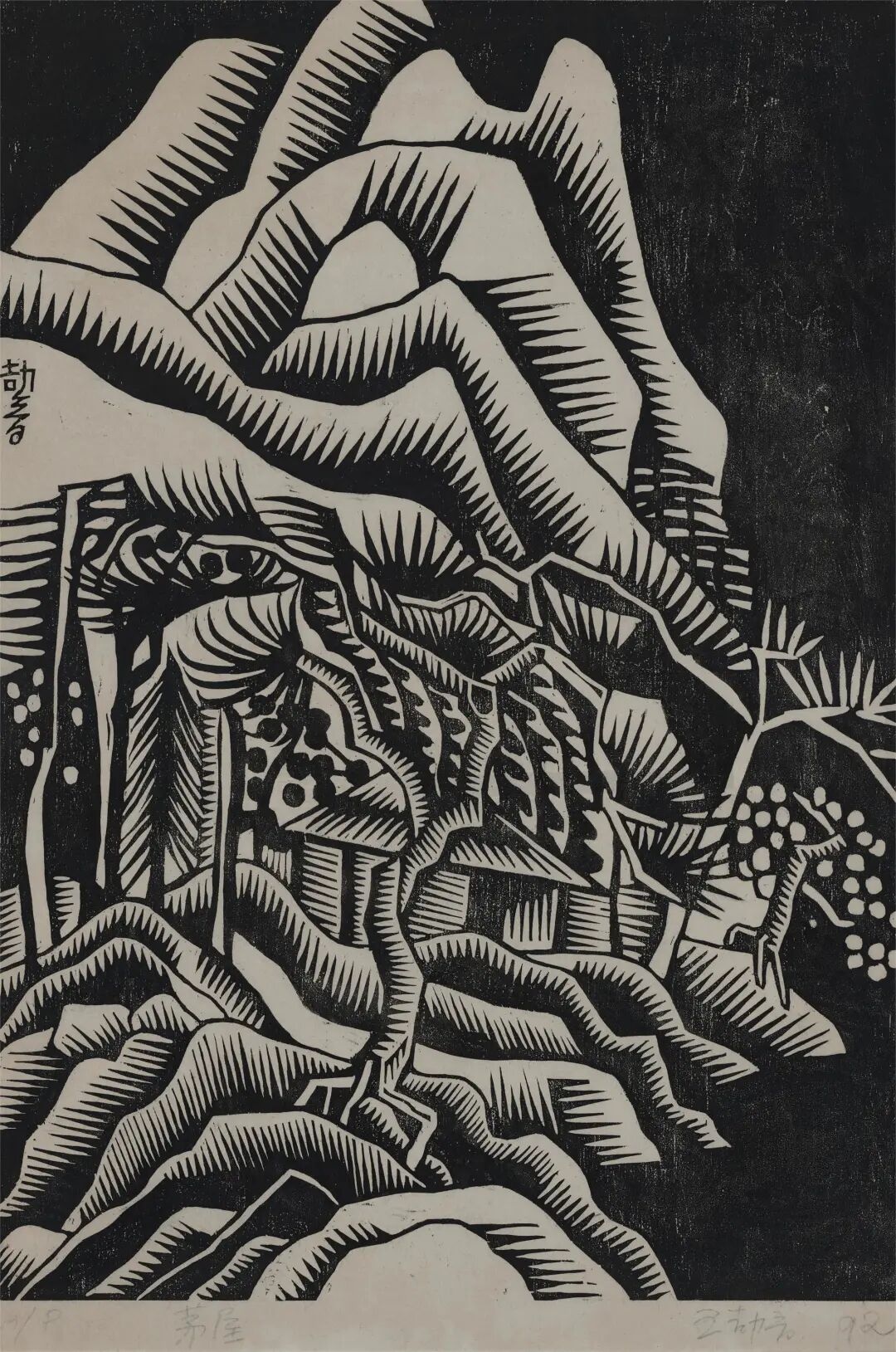 王劼音,茅屋,版画,61x42.5厘米,1992年,上海美术馆(中华艺术宫)藏