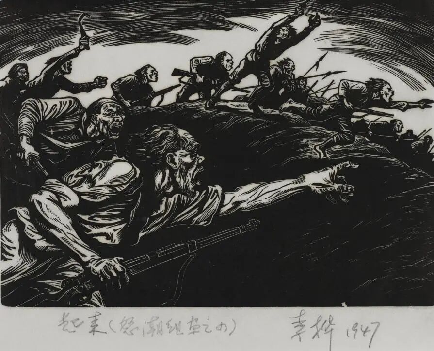 李桦,起来(怒潮组画之四),木刻版画,纸本,19.5x27厘米,1947年,上海美术馆(中华艺术宫)藏