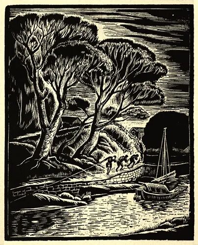 罗清桢,韩江舟子,木刻版画,纸本,32.4x23.8厘米,1934年,北京鲁迅博物馆藏