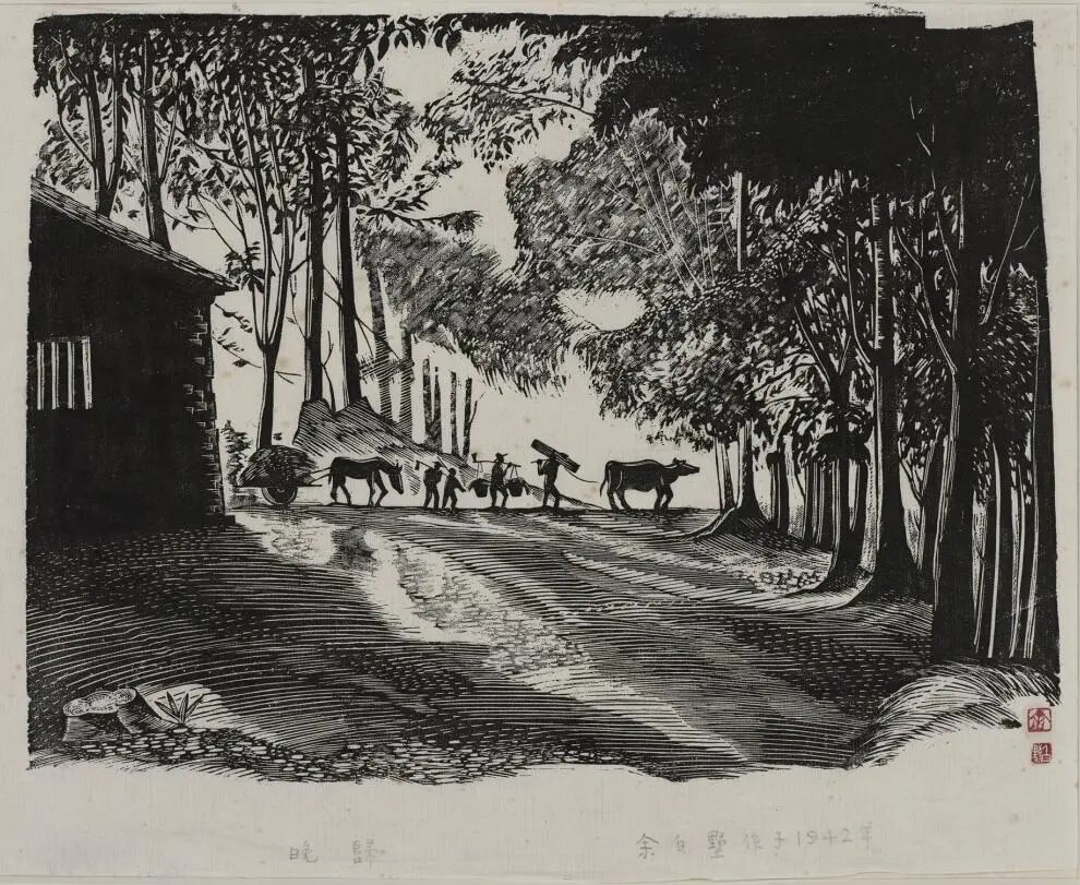 余白墅,晚归,版画,21.5×28厘米,1942年,上海美术馆(中华艺术宫)藏