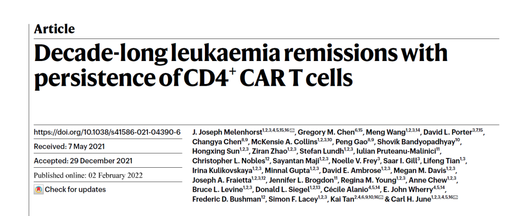 今年2月,Carl June教授领衔的团队在顶尖学术期刊《自然》上发表论文。通过长期研究,他们发现CAR-T疗法的效果可以持续10年之久!“基于这些结果,我们现在能总结说,CAR-T疗法真的可以治愈癌症患者。”June教授说道。