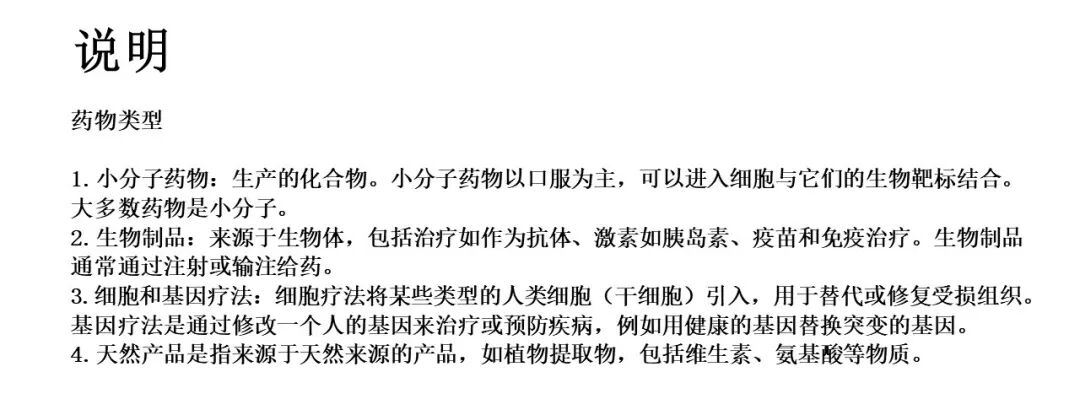 - 药物开发趋势二:新分子类型比重攀升——从3期到1期,除小分子以外的其他新型疗法类型占比上升明显,表明针对阿尔茨海默的生物药、细胞和基因疗法开发正迅速发展。