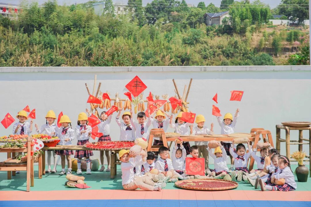 大墅镇中心幼儿园党支部组织党员和孩子们一起开展“竹娃丰收迎国庆,趣味丰收运动会”活动 ,孩子们体验采摘,参加独轮车运南瓜、竹篮运橘子等趣味游戏,还用双手布置喜迎国庆的场景,为祖国73周岁生日献礼。