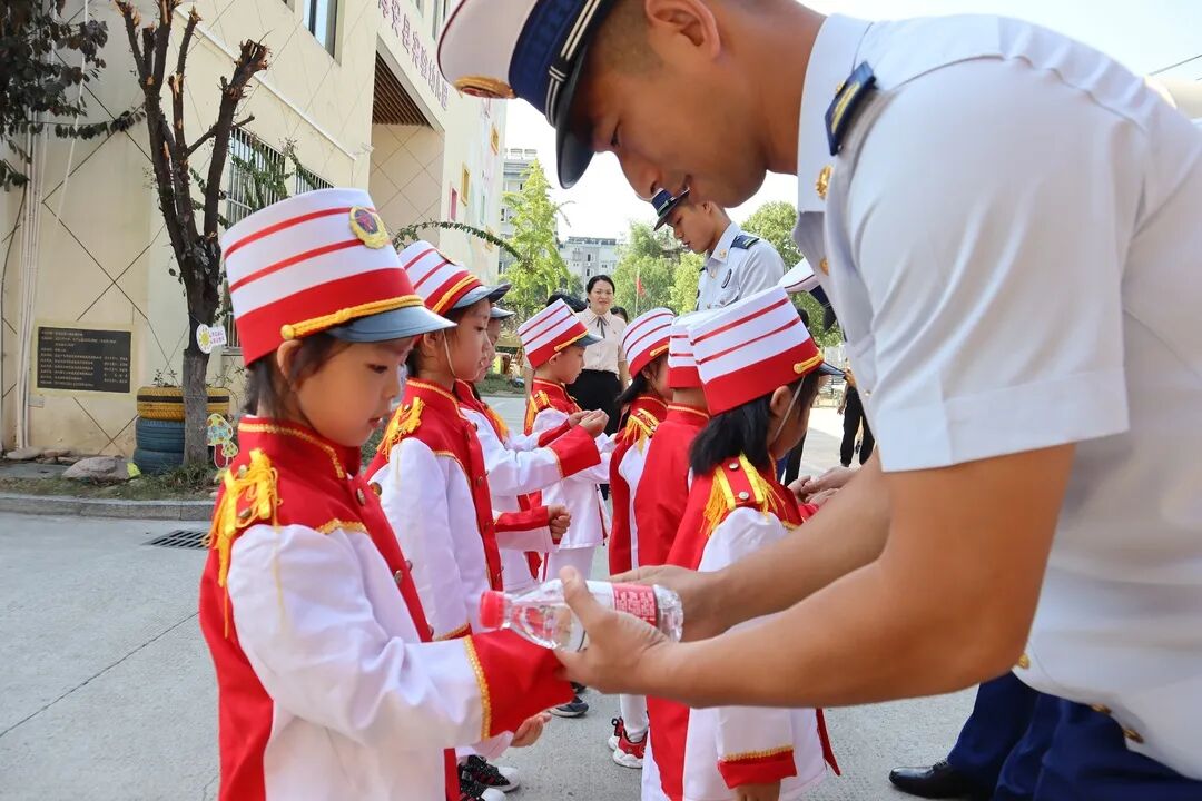 县实验幼儿园把消防员叔叔请进了校园,用独特又富有教育意义的形式来迎接国庆。